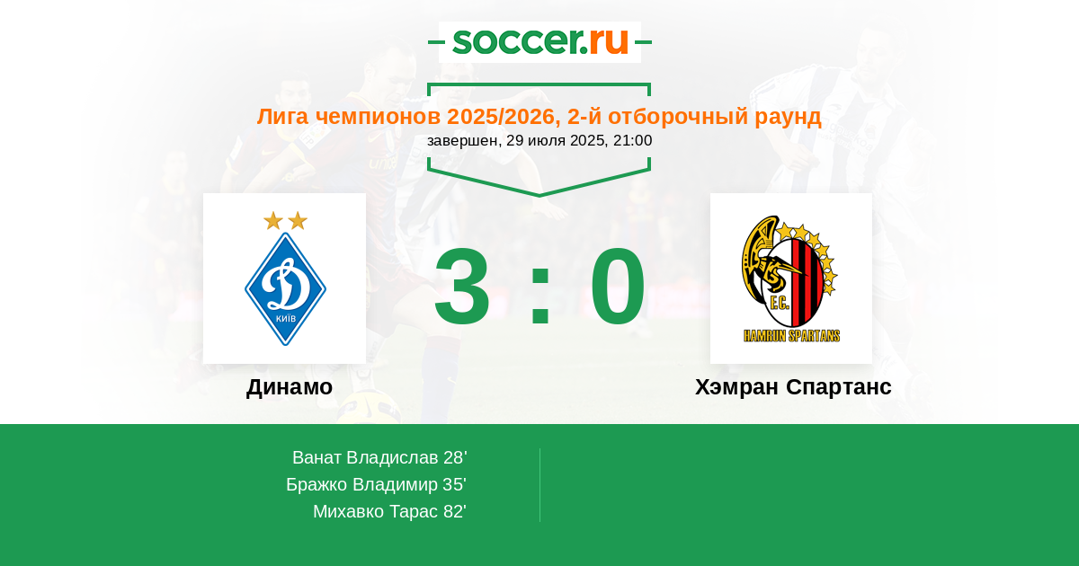 Динамо - Хэмран Спартанс: обзор матча 29 июля 2025