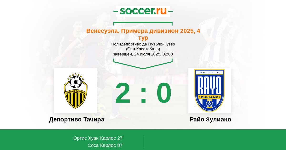 Депортиво Тачира - Райо Зулиано: обзор матча 24 июля 2025