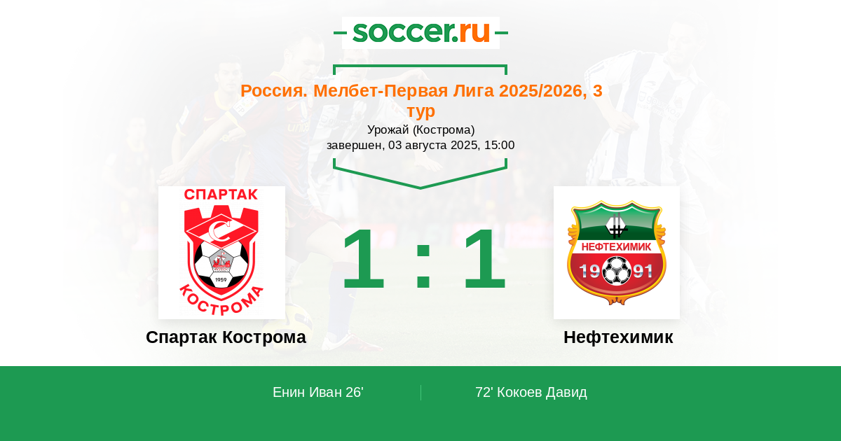 Спартак Кострома - Нефтехимик: обзор матча 3 августа 2025