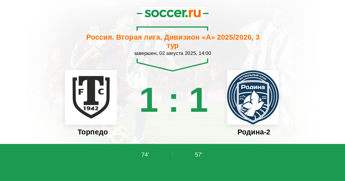 Торпедо - Родина-2: обзор матча 2 августа 2025