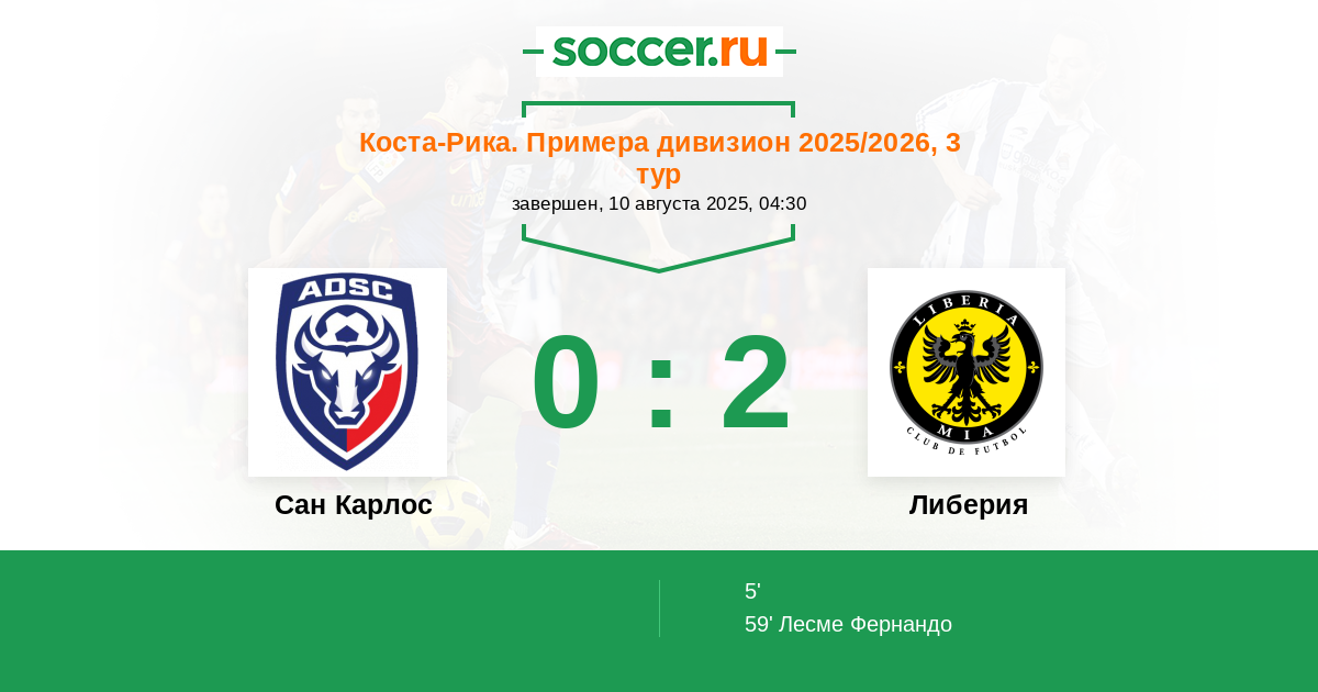 Сан Карлос - Либерия: обзор матча 10 августа 2025