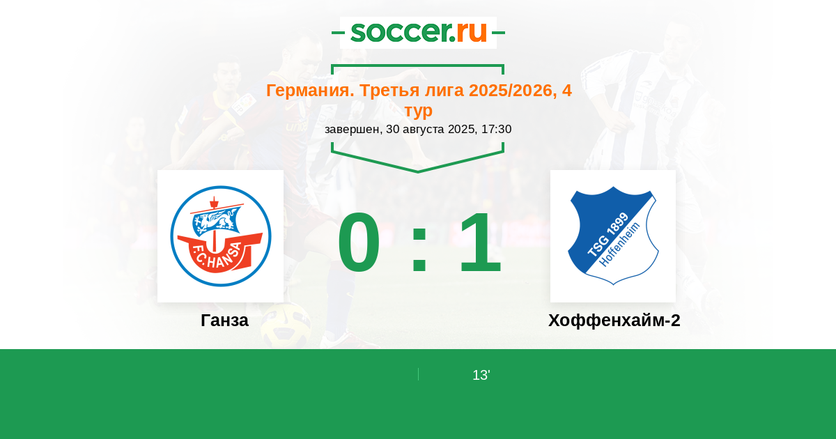 Ганза - Хоффенхайм-2: обзор матча 30 августа 2025