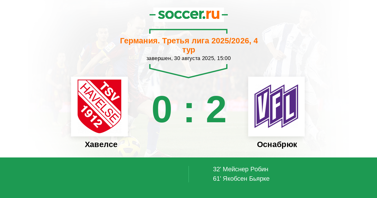 Хавелсе - Оснабрюк: обзор матча 30 августа 2025