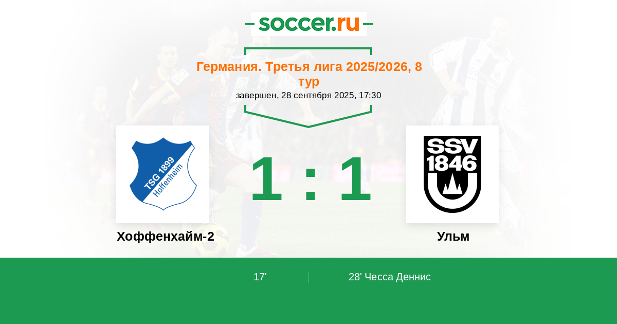 Хоффенхайм-2 - Ульм: обзор матча 28 сентября 2025
