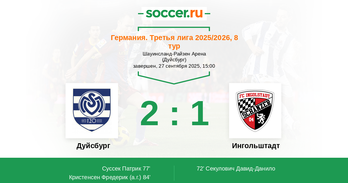 Дуйсбург - Ингольштадт: обзор матча 27 сентября 2025