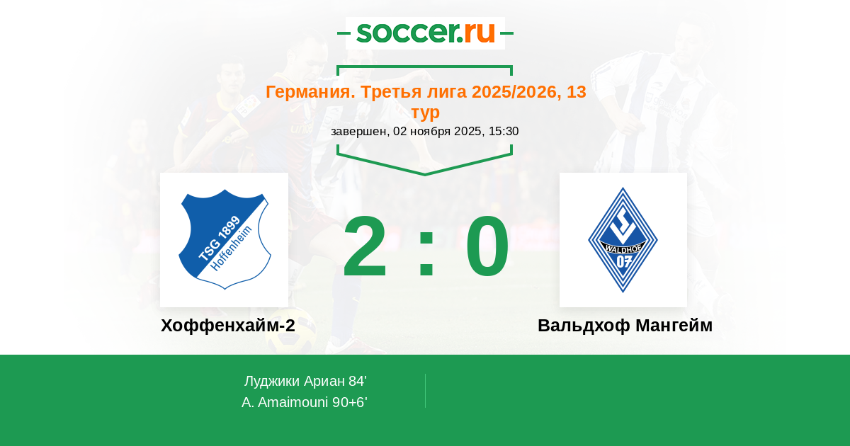 Хоффенхайм-2 - Вальдхоф Мангейм: обзор матча 2 ноября 2025