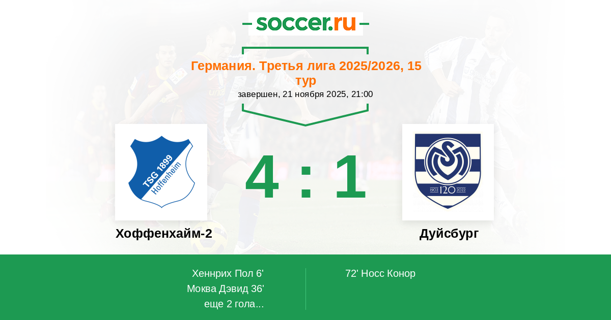 Хоффенхайм-2 - Дуйсбург: обзор матча 21 ноября 2025