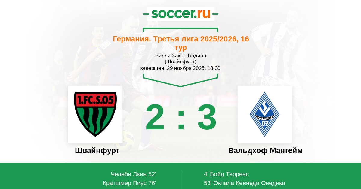 Швайнфурт - Вальдхоф Мангейм: обзор матча 29 ноября 2025