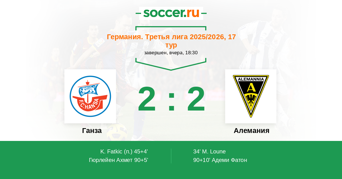Ганза - Алемания: обзор матча 7 декабря 2025