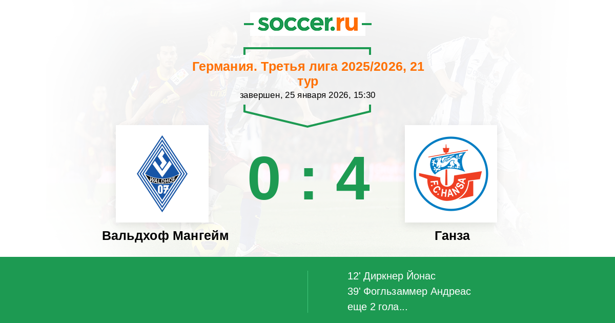 Вальдхоф Мангейм - Ганза: обзор матча 25 января 2026