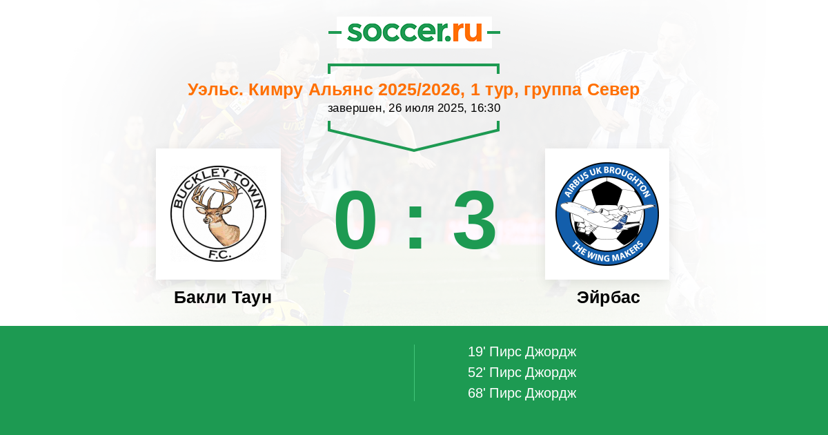 Бакли Таун - Эйрбас: обзор матча 26 июля 2025