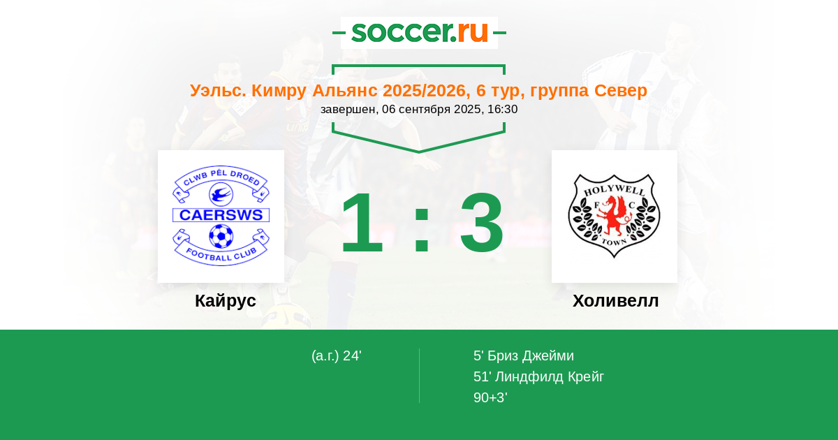 Кайрус - Холивелл: обзор матча 6 сентября 2025
