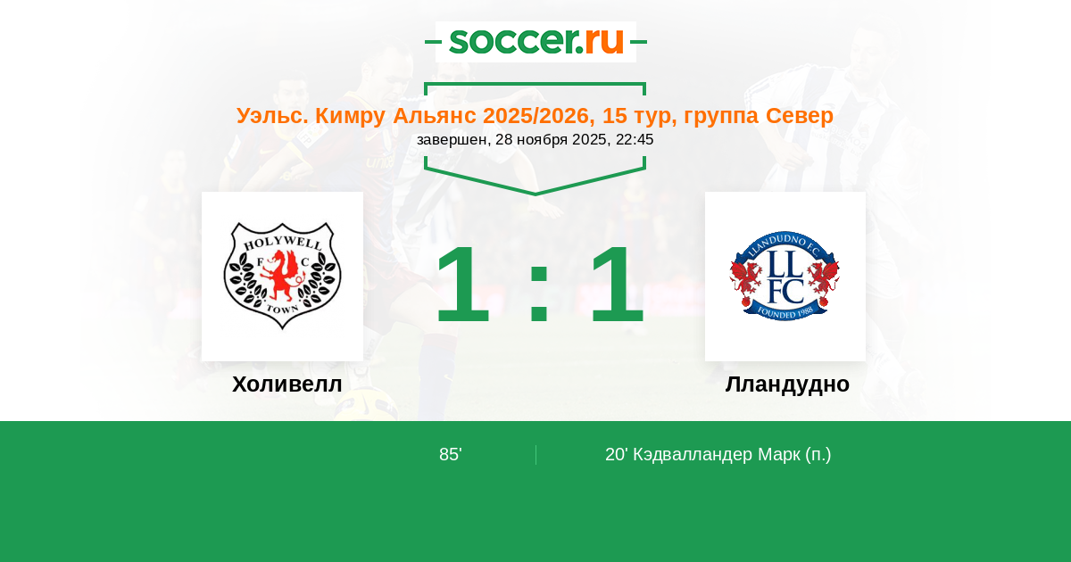 Холивелл - Лландудно: обзор матча 28 ноября 2025