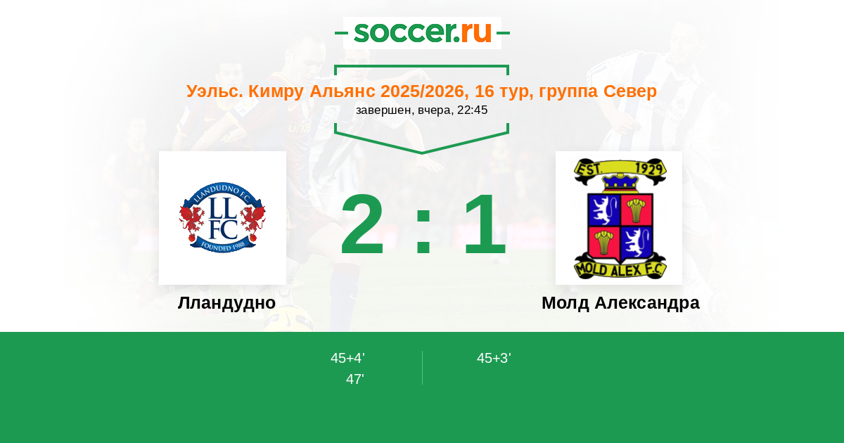 Лландудно - Молд Александра: обзор матча 16 декабря 2025