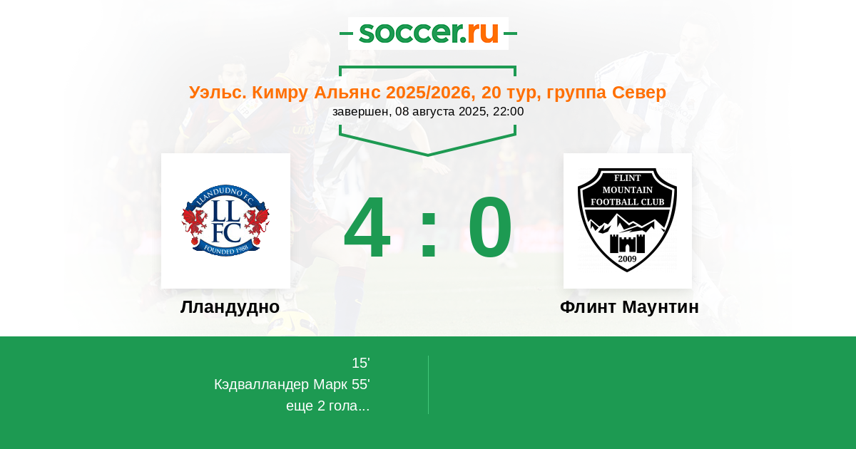 Лландудно - Флинт Маунтин: обзор матча 8 августа 2025