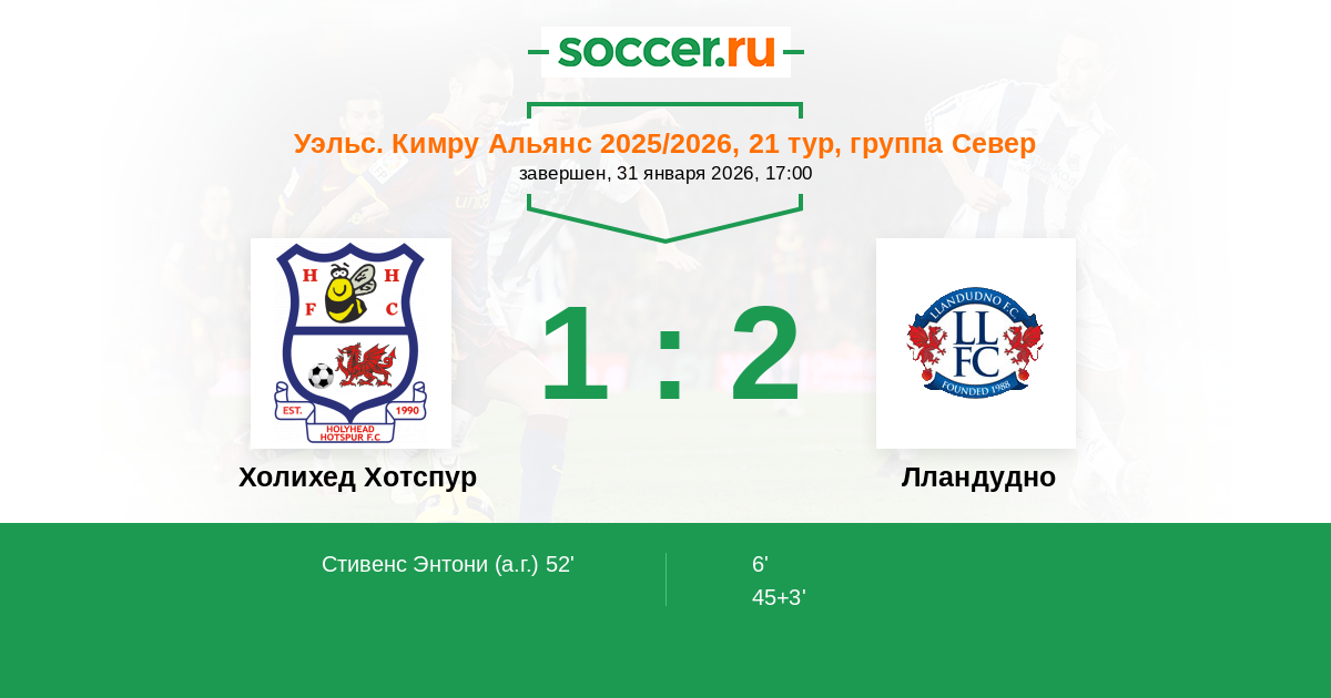 Холихед Хотспур - Лландудно: обзор матча 31 января 2026