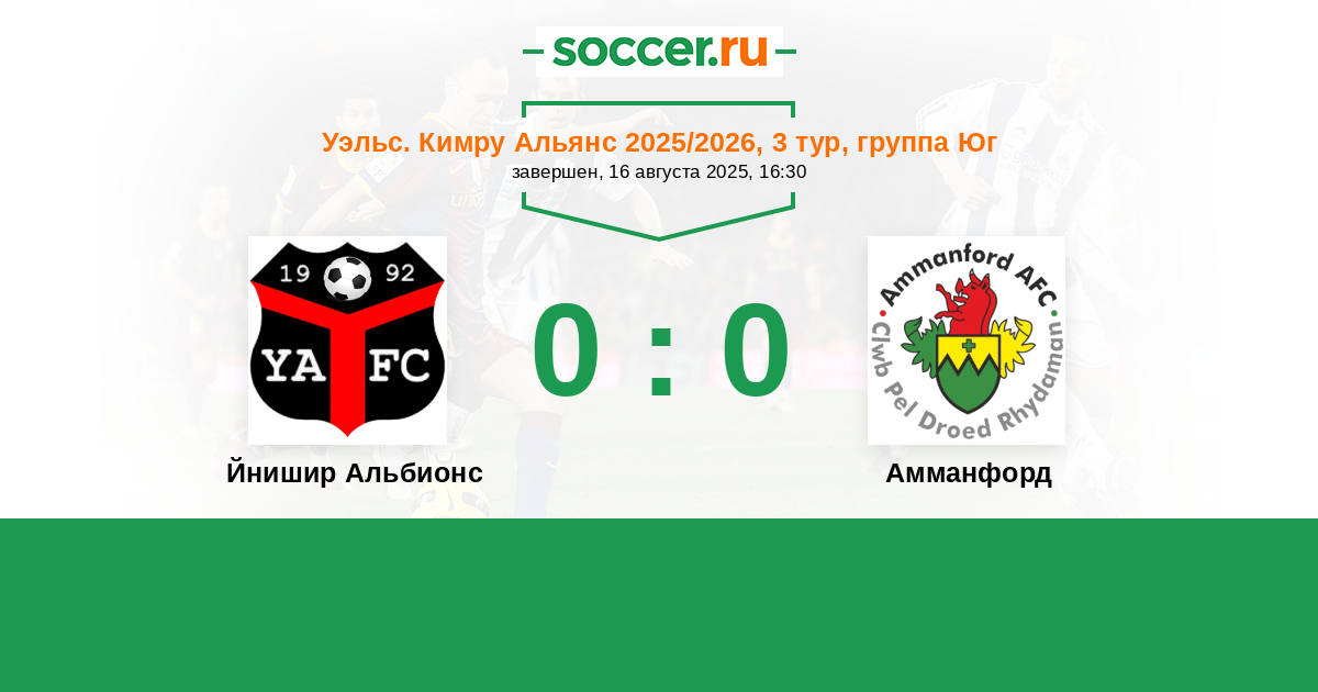 Йнишир Альбионс - Амманфорд: обзор матча 16 августа 2025