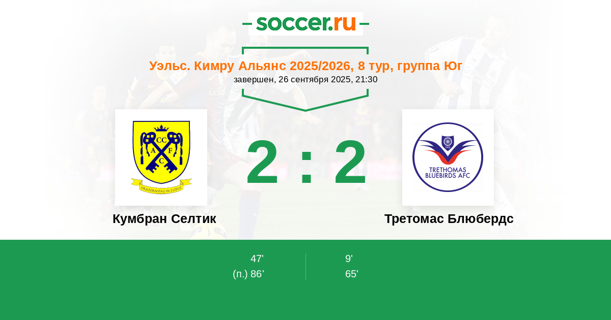 Кумбран Селтик - Третомас Блюбердс: обзор матча 26 сентября 2025