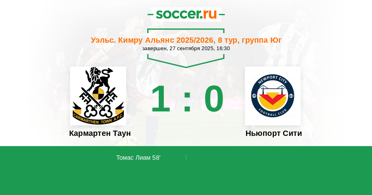 Кармартен Таун - Ньюпорт Сити: обзор матча 27 сентября 2025