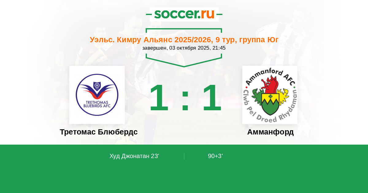 Третомас Блюбердс - Амманфорд: обзор матча 3 октября 2025