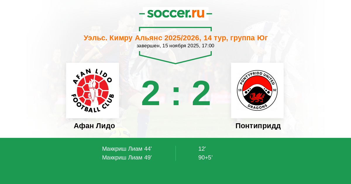 Афан Лидо - Понтипридд: обзор матча 15 ноября 2025
