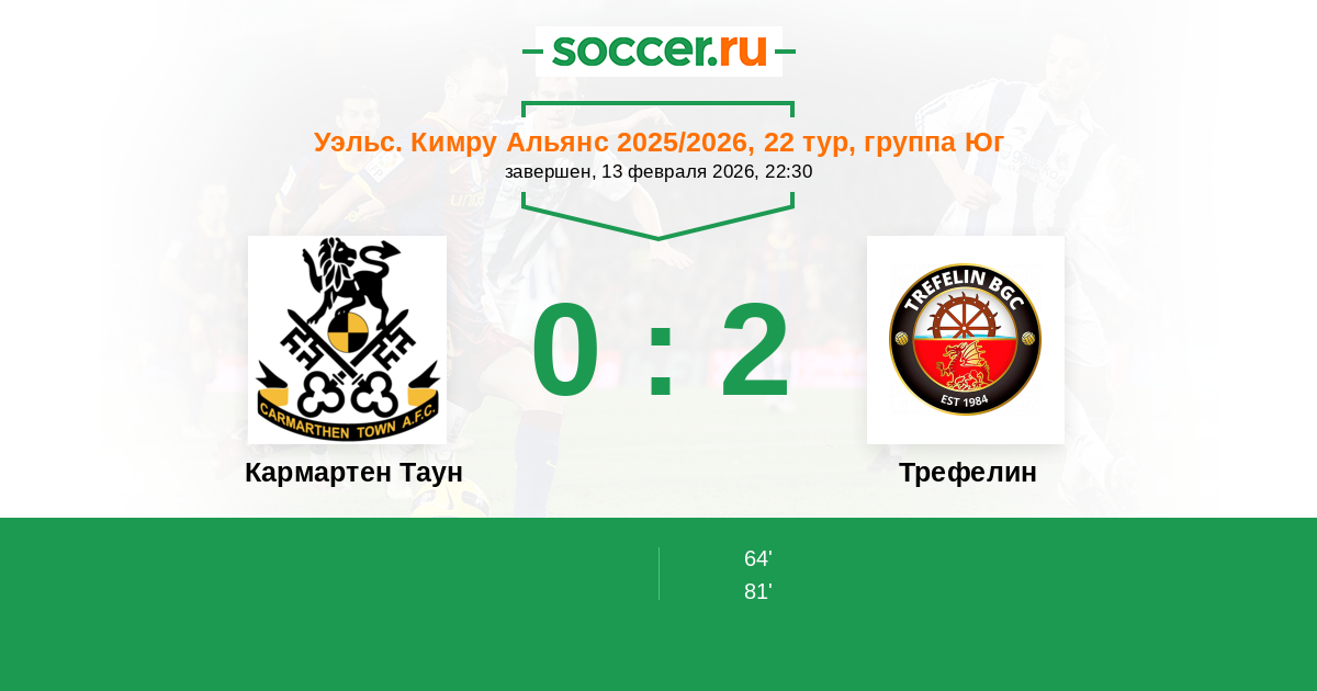 Кармартен Таун - Трефелин: обзор матча 13 февраля 2026