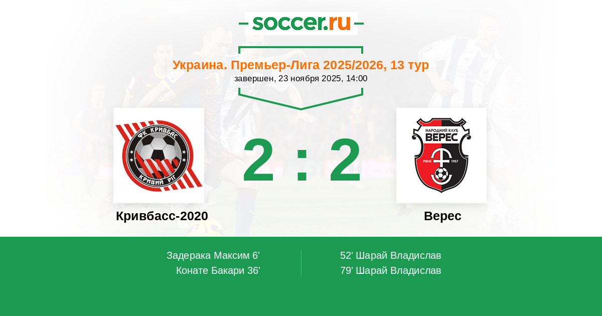 Кривбасс-2020 - Верес: обзор матча 23 ноября 2025