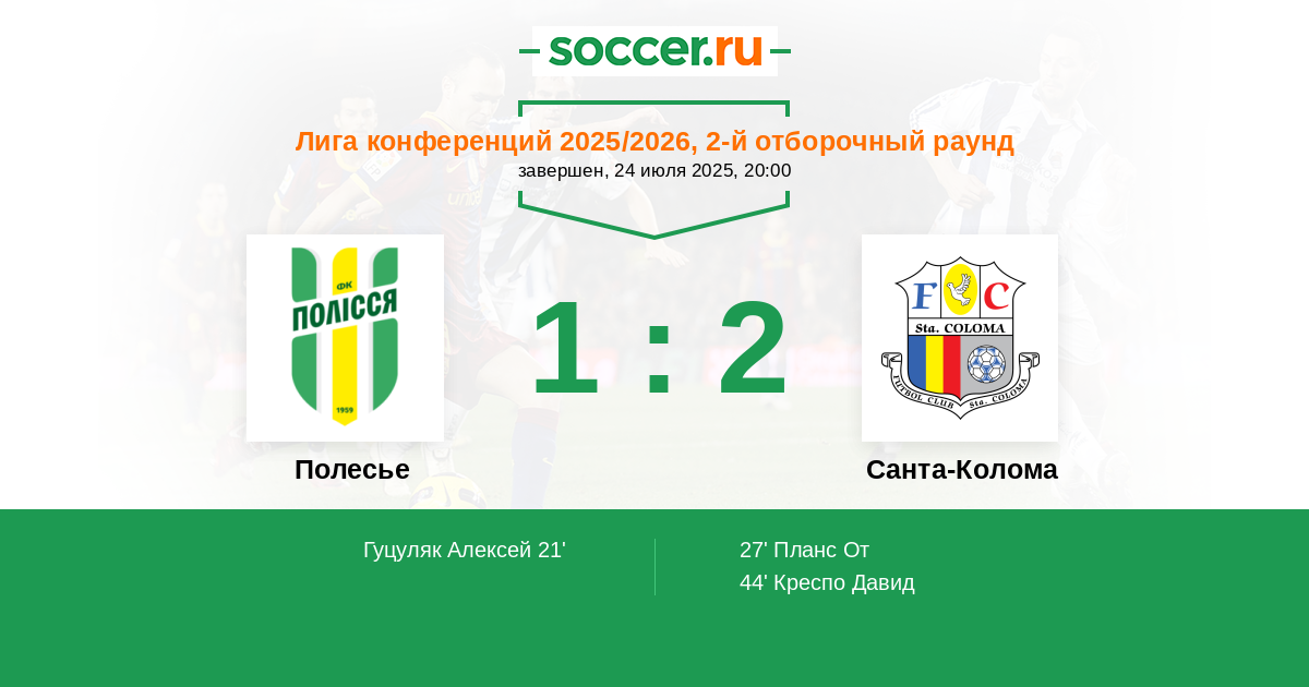 Полесье - Санта-Колома: обзор матча 24 июля 2025