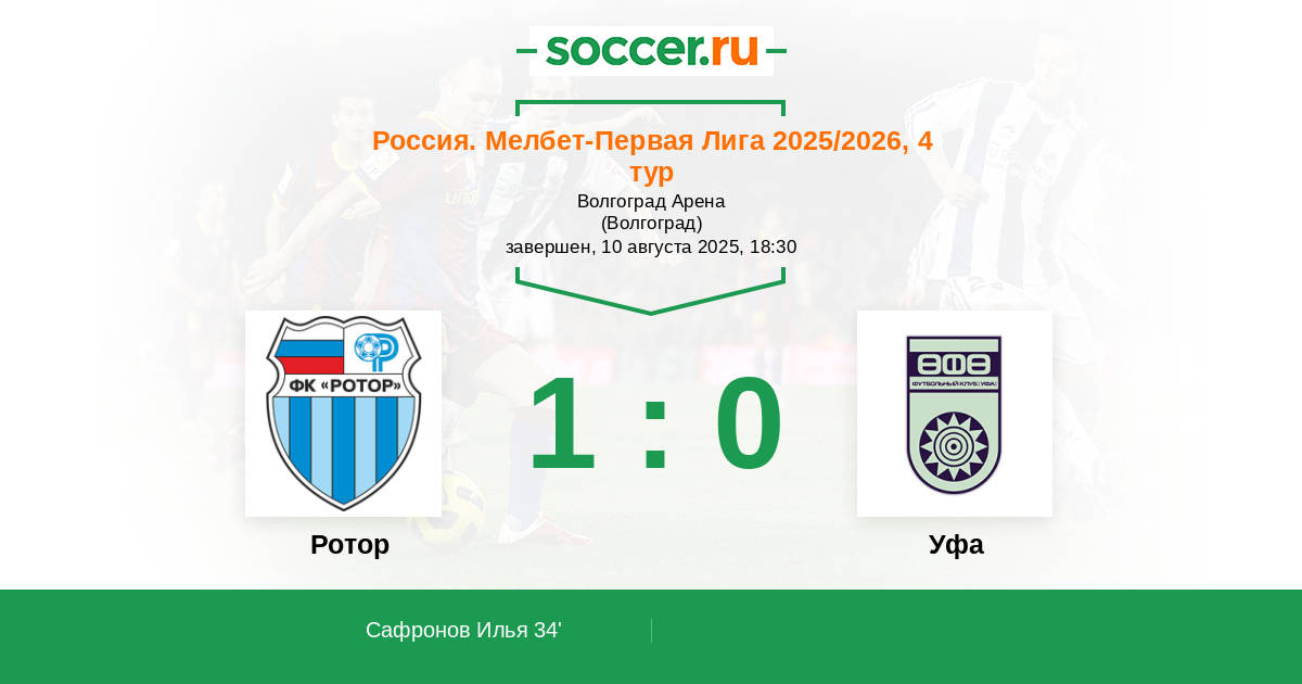 Ротор - Уфа: обзор матча 10 августа 2025