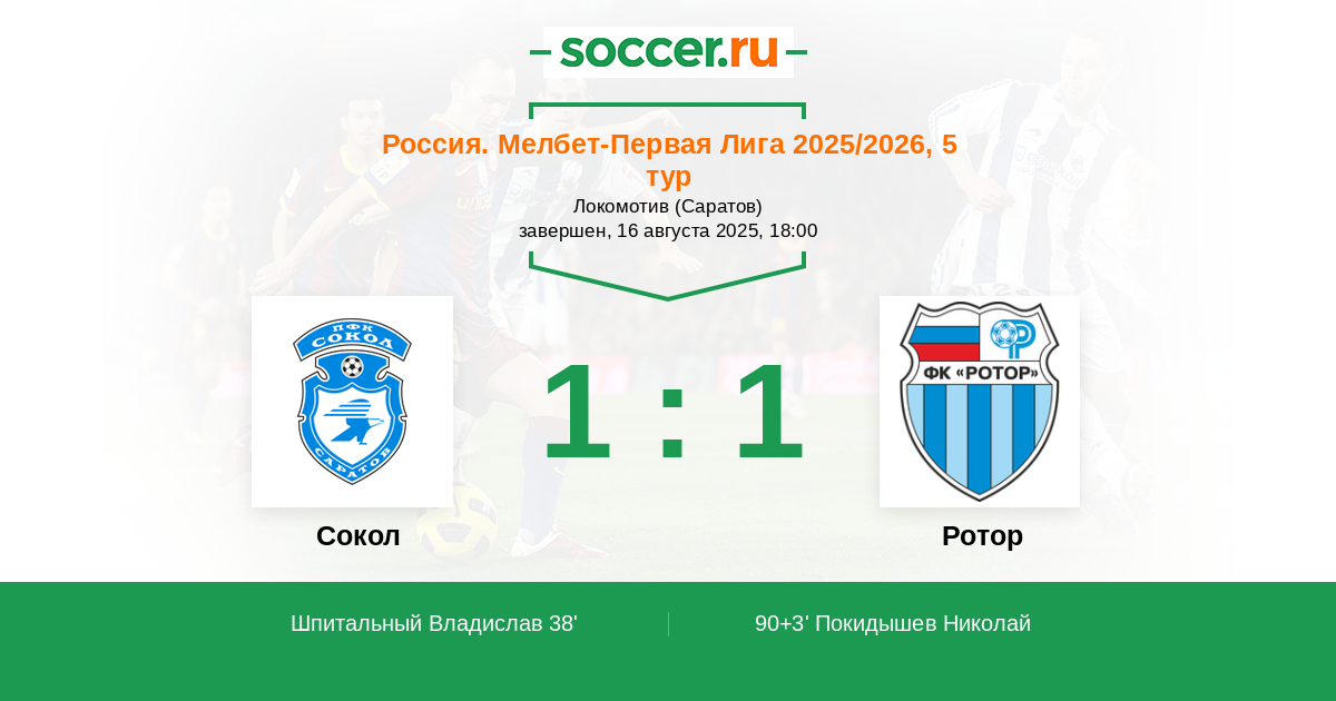 Сокол - Ротор: обзор матча 16 августа 2025