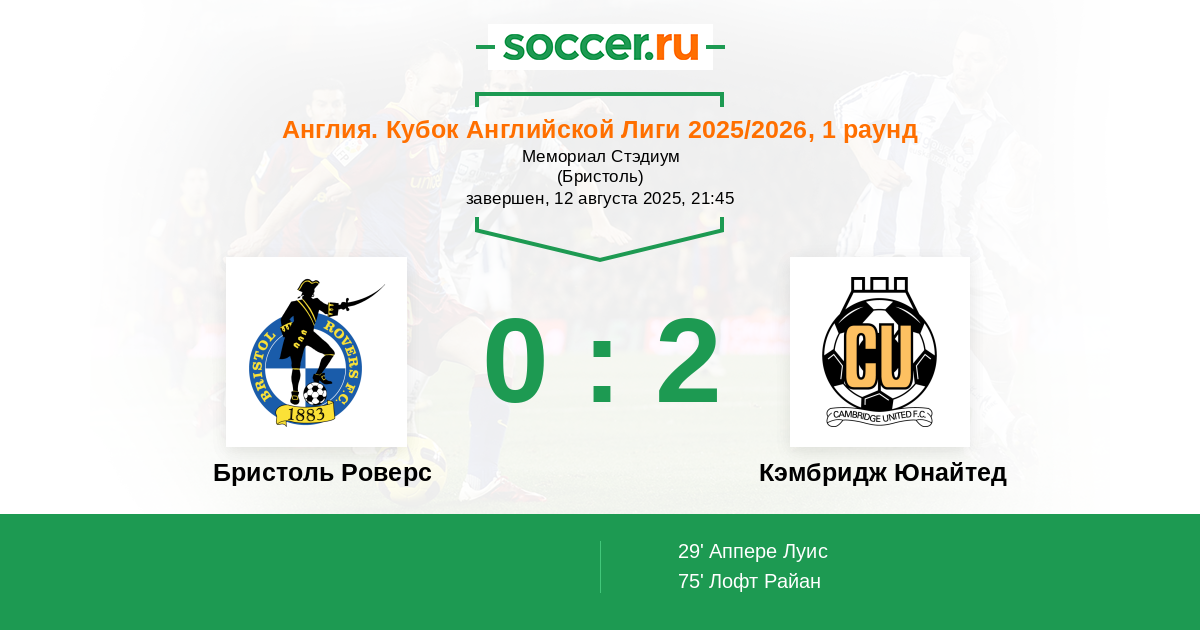 Бристоль Роверс - Кэмбридж Юнайтед: обзор матча 12 августа 2025