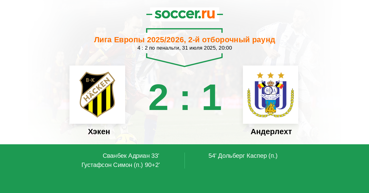 Хэкен - Андерлехт: обзор матча 31 июля 2025