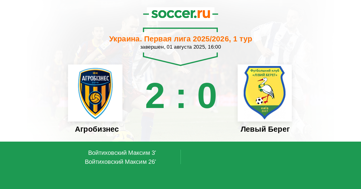 Агробизнес - Левый Берег: обзор матча 1 августа 2025