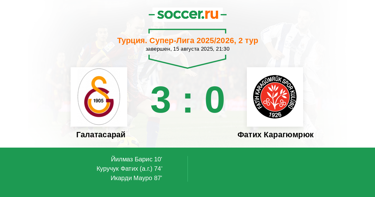 Галатасарай - Фатих Карагюмрюк: обзор матча 15 августа 2025