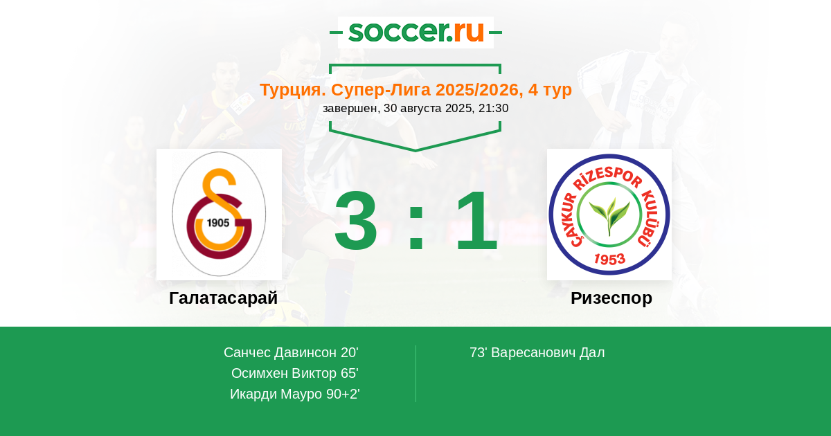 Галатасарай - Ризеспор: обзор матча 30 августа 2025