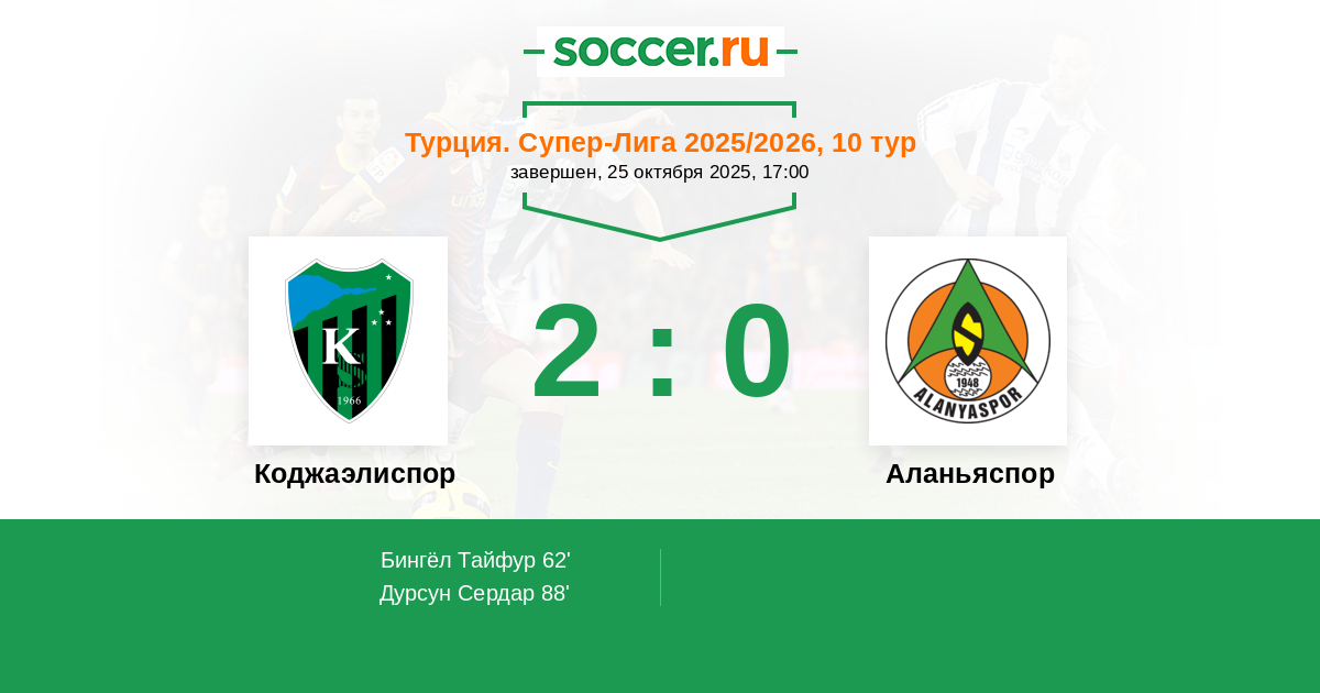 Коджаэлиспор - Аланьяспор: обзор матча 25 октября 2025