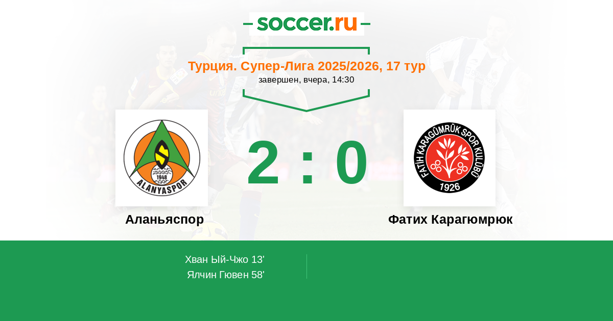 Аланьяспор - Фатих Карагюмрюк: обзор матча 21 декабря 2025