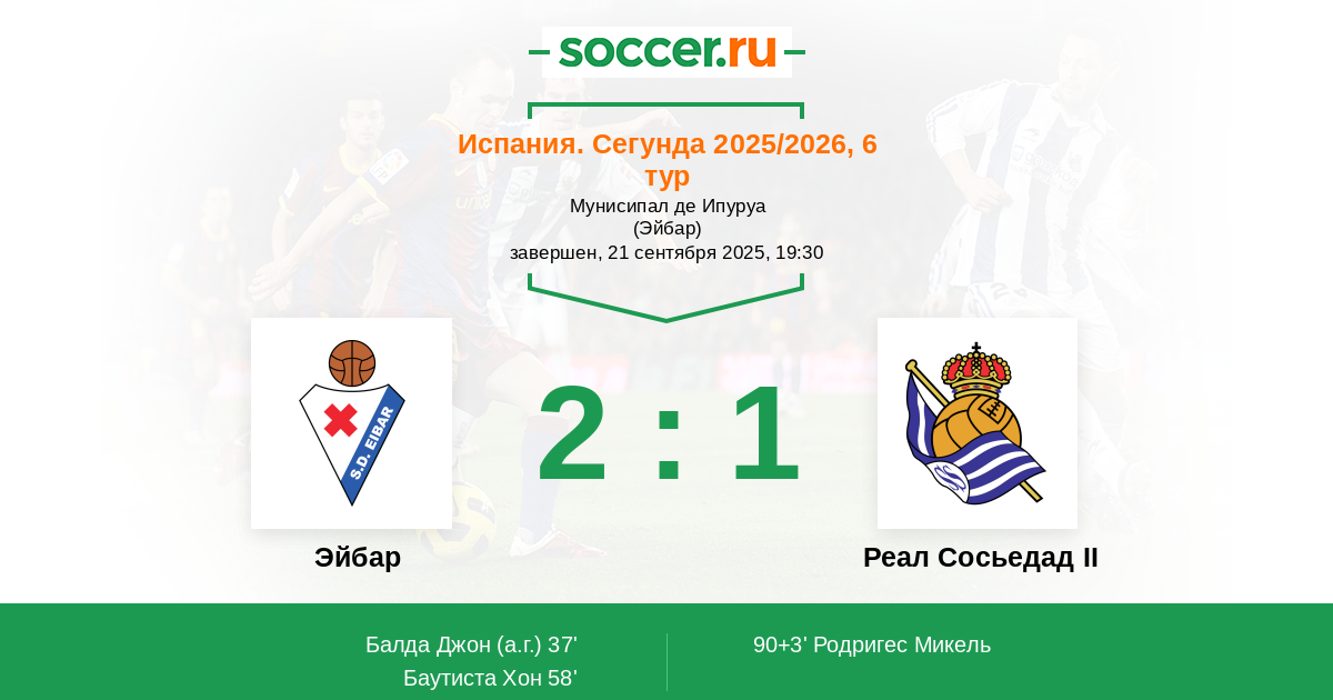 Эйбар - Реал Сосьедад II: обзор матча 21 сентября 2025