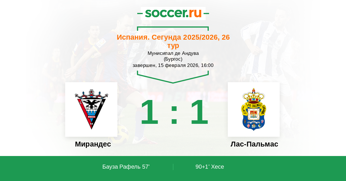 Мирандес - Лас-Пальмас: обзор матча 15 февраля 2026