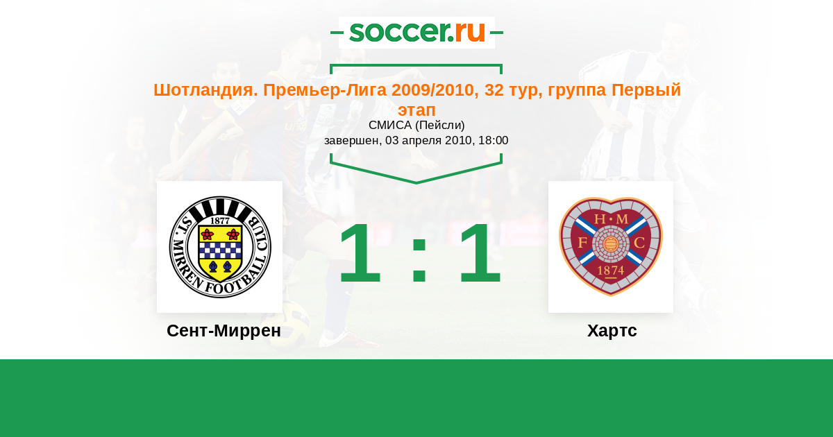 Сент-Миррен - Хартс: обзор матча 3 апреля 2010
