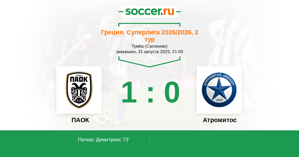 ПАОК - Атромитос: обзор матча 31 августа 2025