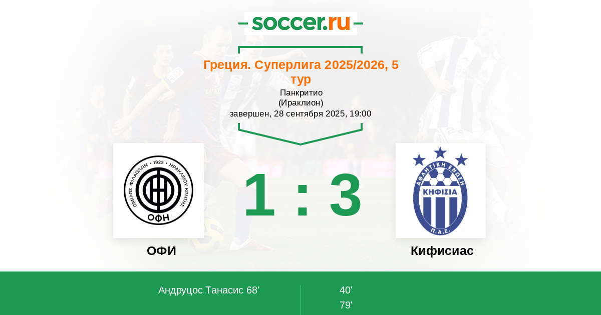 ОФИ - Кифисиас: обзор матча 28 сентября 2025