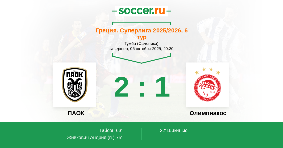 ПАОК - Олимпиакос: обзор матча 5 октября 2025
