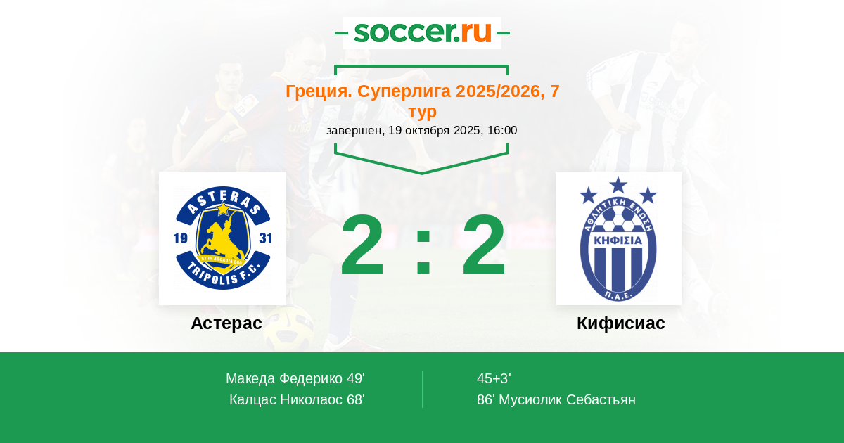 Астерас - Кифисиас: обзор матча 19 октября 2025