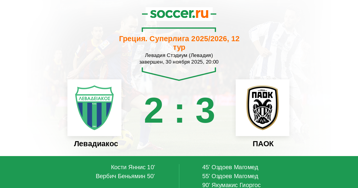 Левадиакос - ПАОК: обзор матча 30 ноября 2025