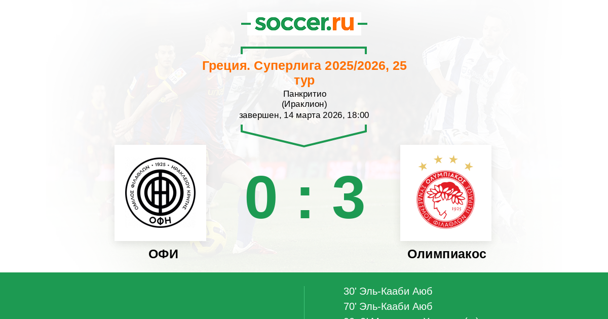 ОФИ - Олимпиакос: обзор матча 14 марта 2026