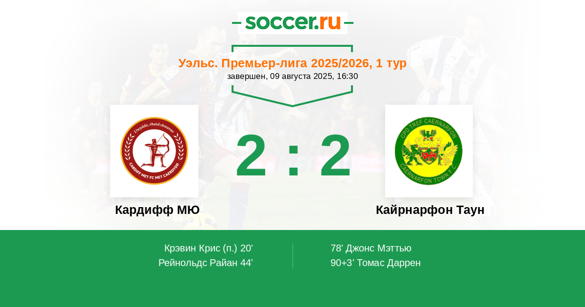 Кардифф МЮ - Кайрнарфон Таун: обзор матча 9 августа 2025