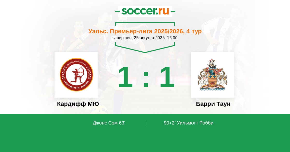Кардифф МЮ - Барри Таун: обзор матча 25 августа 2025