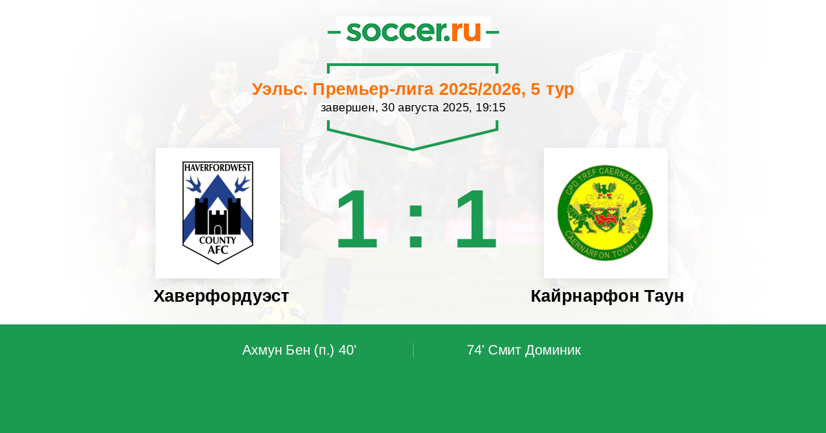 Хаверфордуэст - Кайрнарфон Таун: обзор матча 30 августа 2025