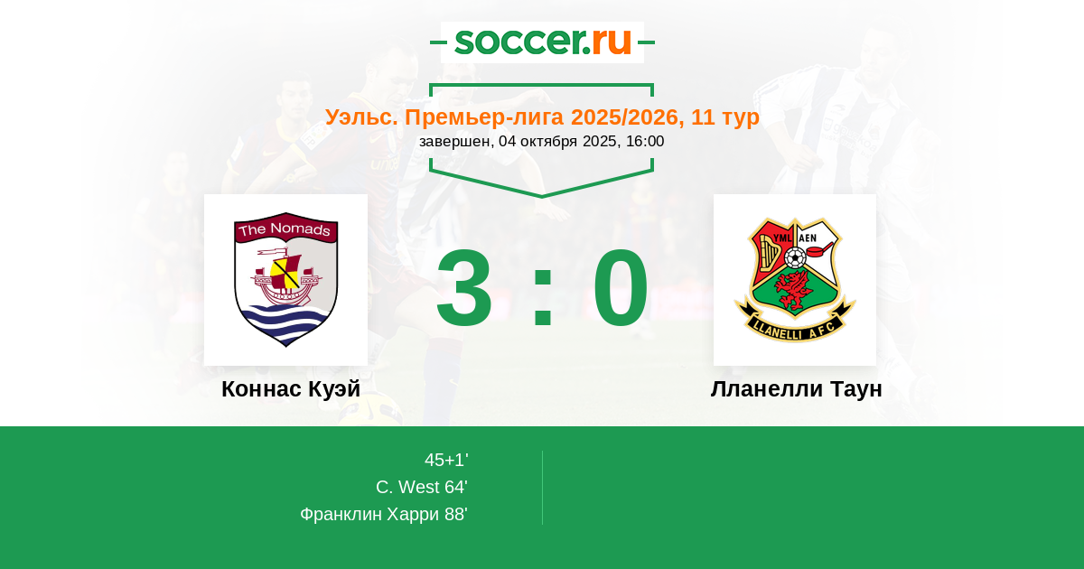 Коннас Куэй - Лланелли Таун: обзор матча 4 октября 2025